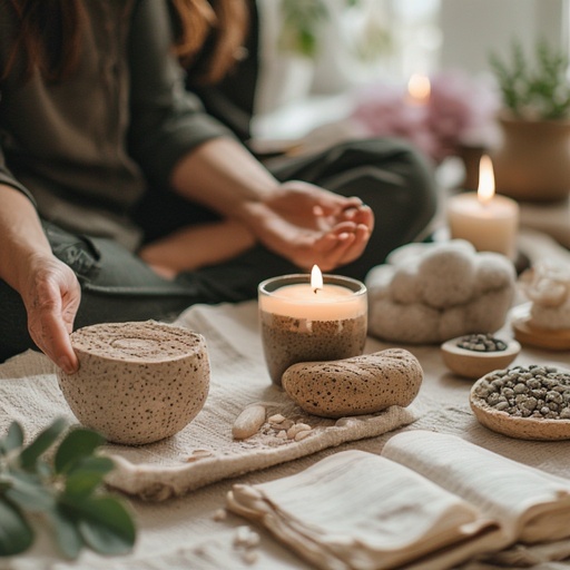 Meditation, grounding practices, breathwork, and mindful awareness for reducing anxiety and finding inner stability.